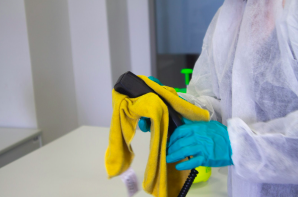 Source – Alt: A commercial cleaning disinfecting an office phone during a deep clean